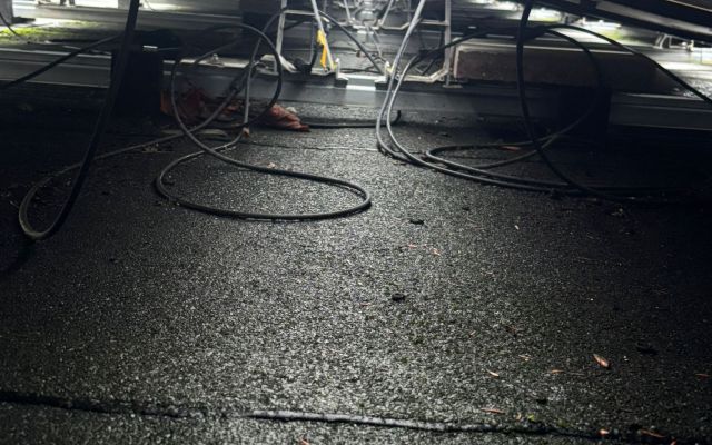 • MC4 connectors left exposed on roof level, not secured, lying in standing water