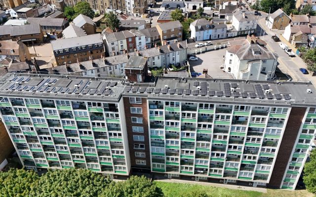 23.2kWp solar PV system installed on the flat roof, generating clean, affordable energy for residents.